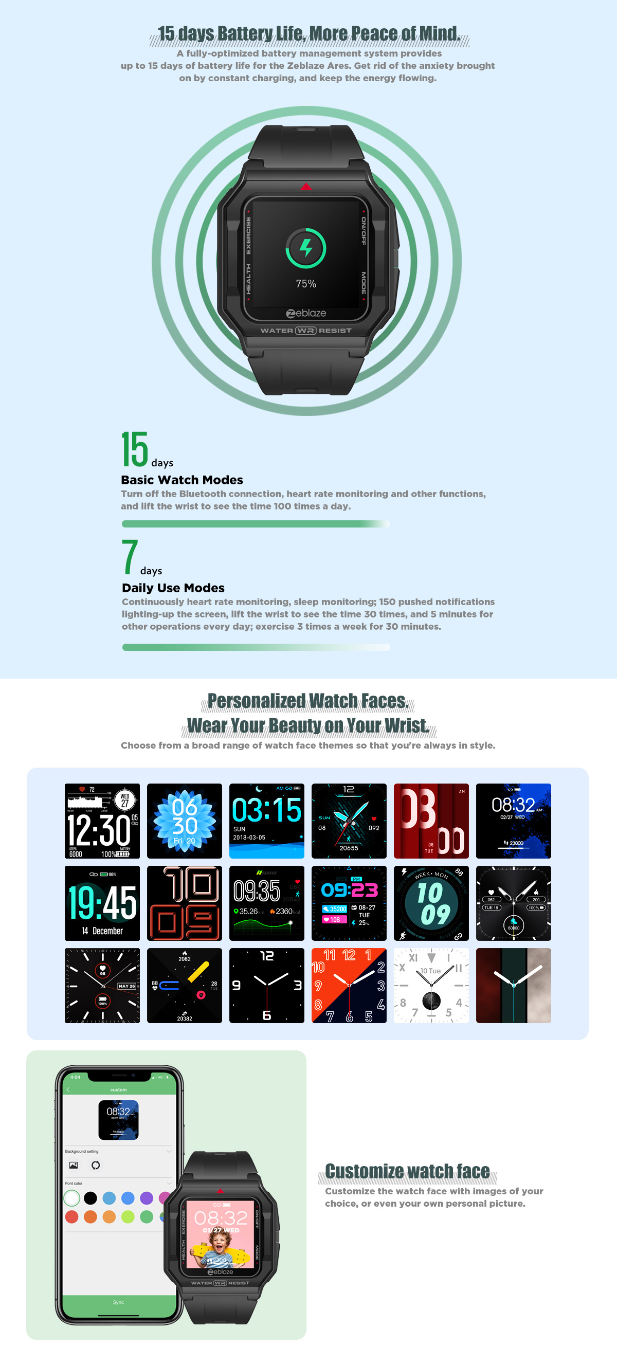 Zeblaze Ares Smart Watch Retro 33g Heart Rate Monitor Blood Pressure Multi-Language Custom Dial Foreign Trade