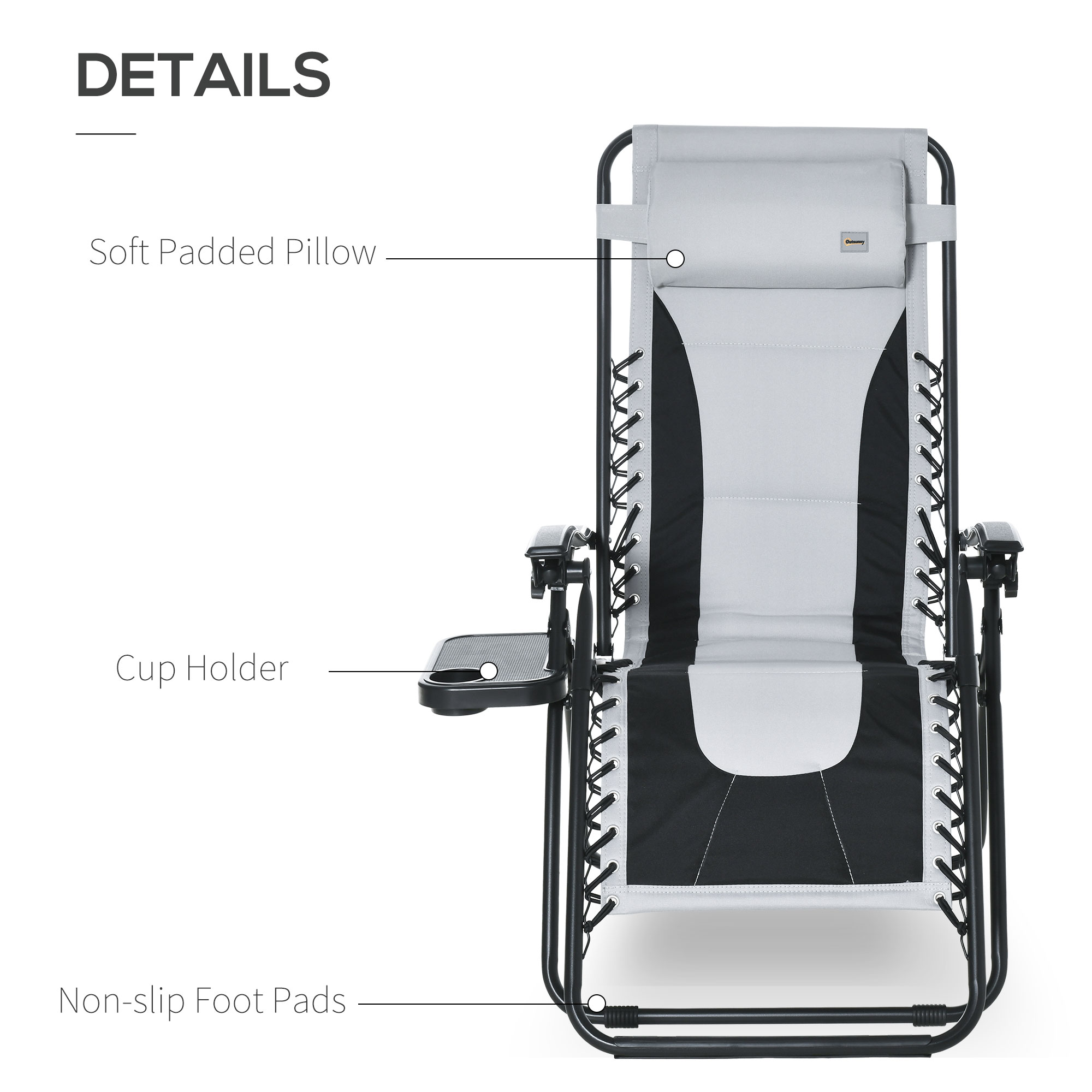 Zero Gravity Lounger Chair, Folding Reclining Patio Chair With Padded Seat, Cup Holder, Soft Cushion And Headrest For Poolside, Camping, Light Grey
