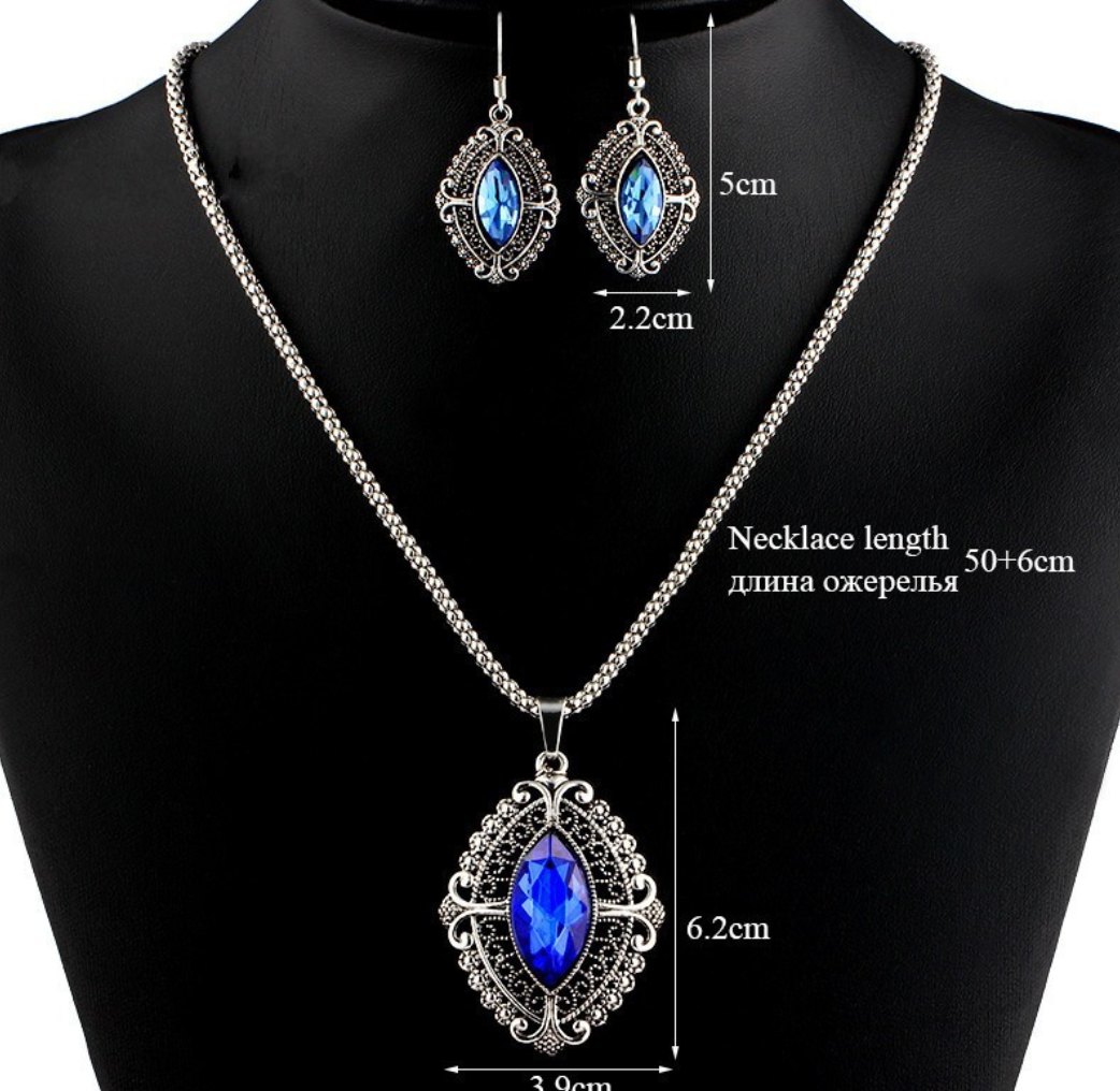 Product features: High-quality plating, original design, standard thickness, popular classic crystal earrings, necklace set