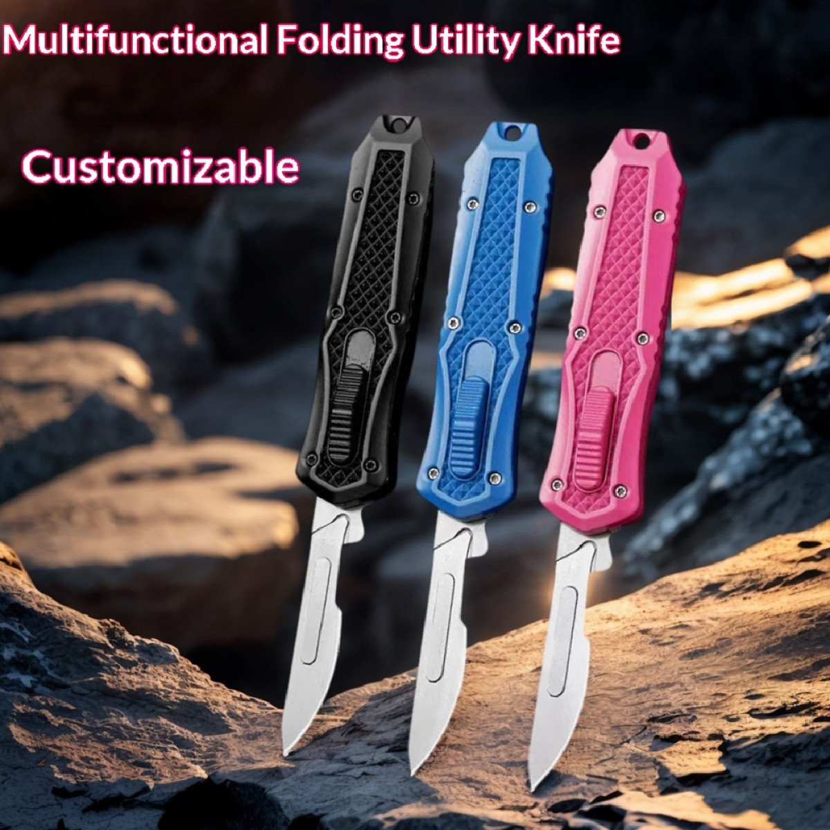 Product information:Color: pink, blue, black Material: 3Cr13 Category: utility knife