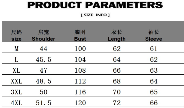 Sizes M, L, XL, 2XL, 3XL, 4XL