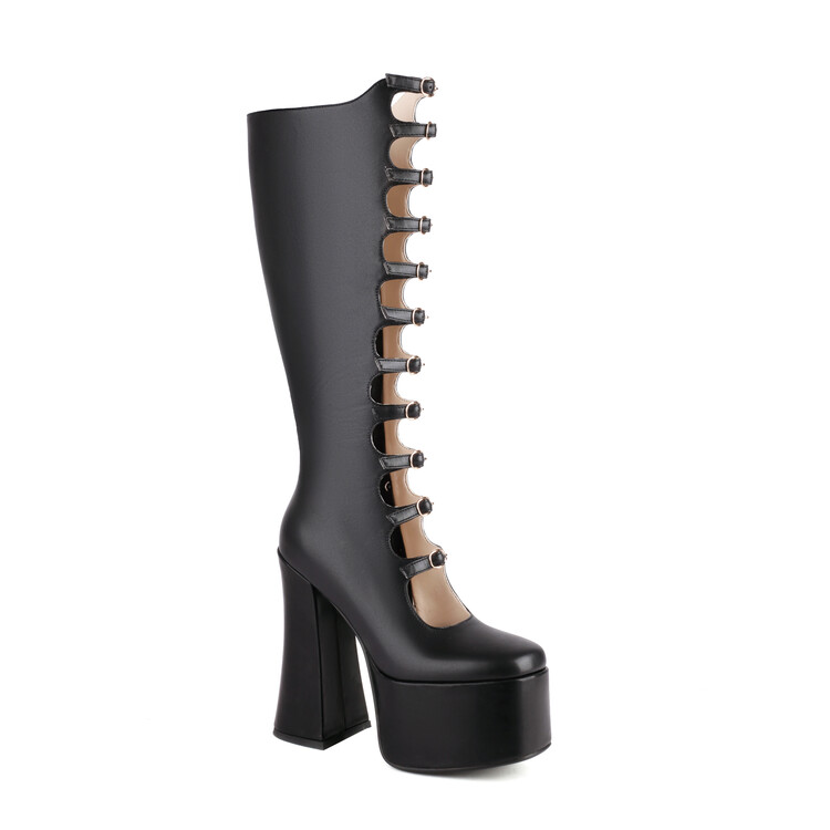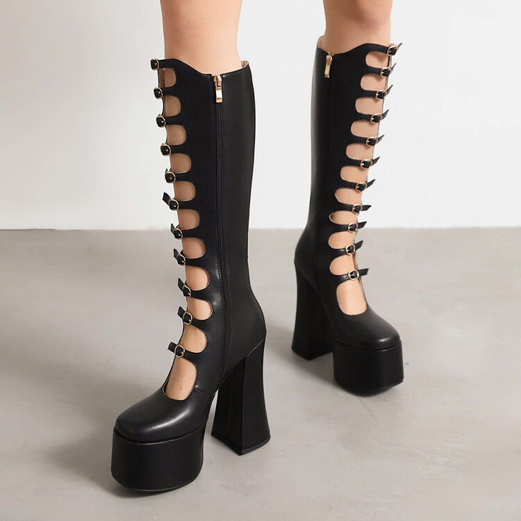 Zipper Belt Buckle High Top Boots