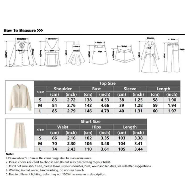 Color: beige top, beige casual pants, black top, black casual pants, gray top, gray casual pants