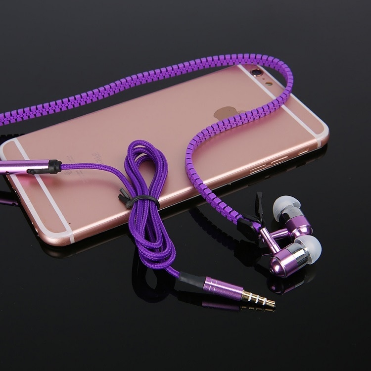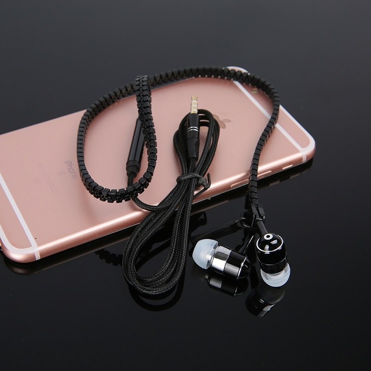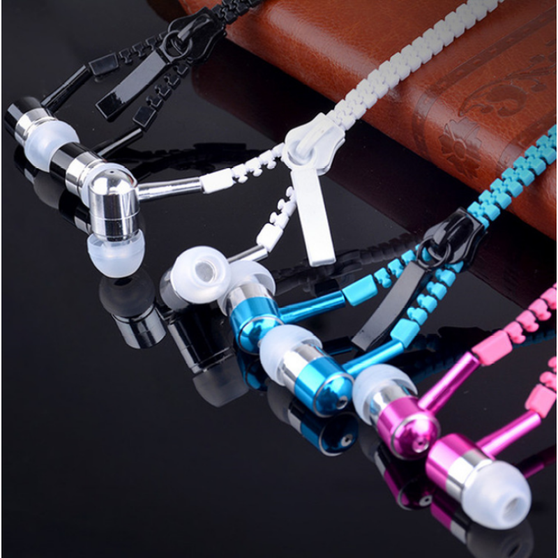 zipper earphone 3.5mm audio jack in-ear earphones with microphone
