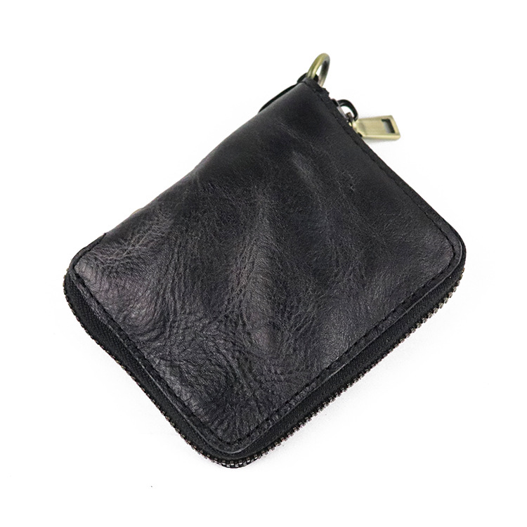 Zipper folding compact vegetable tanned leather wallet