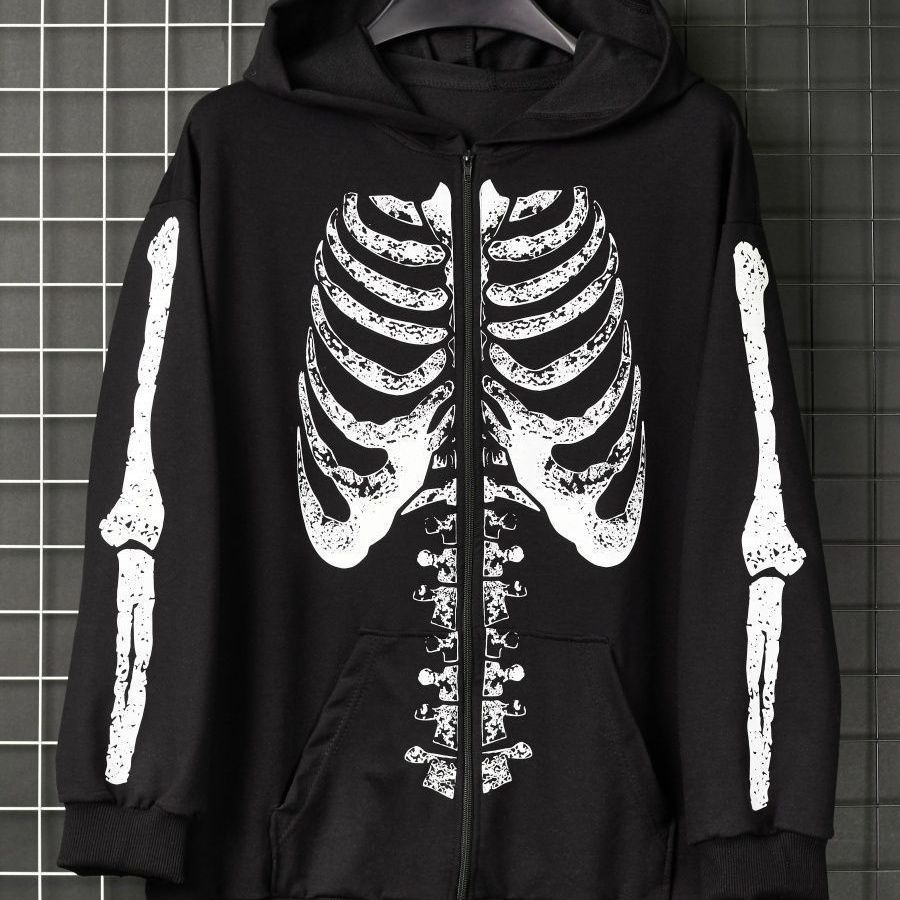 Zipper Sweater Dark Style Y2g Vintage Cardigan Coat Skull Print
