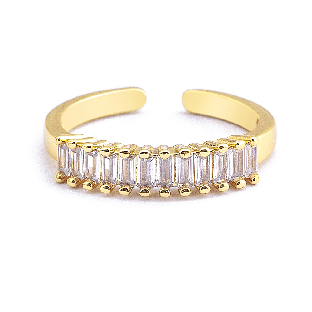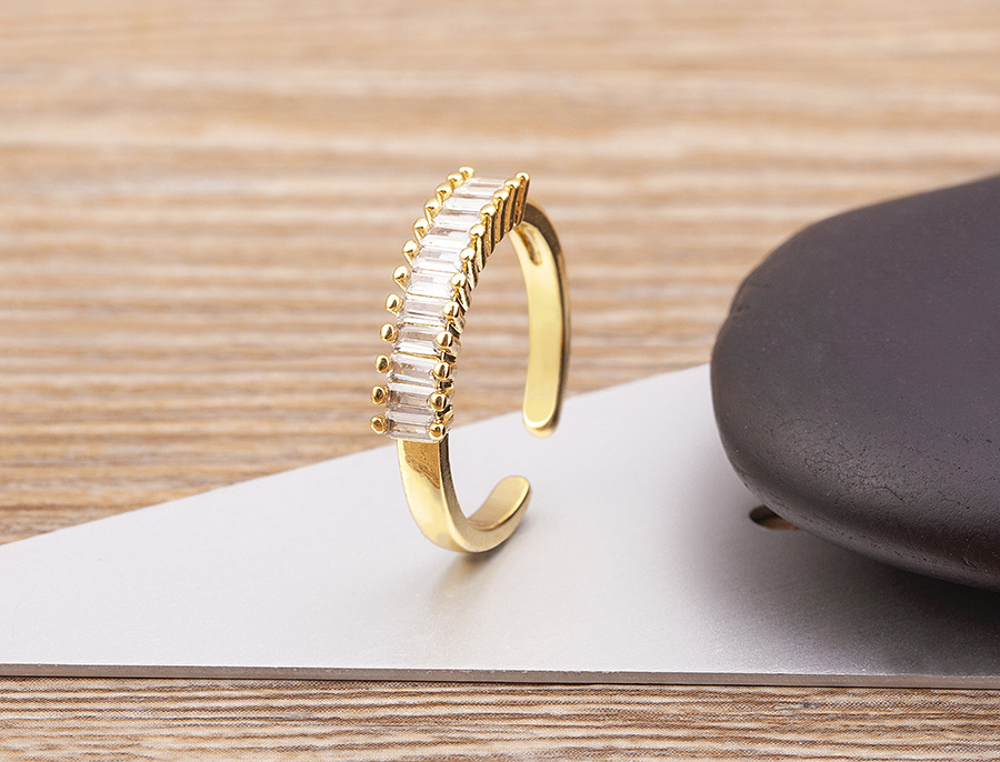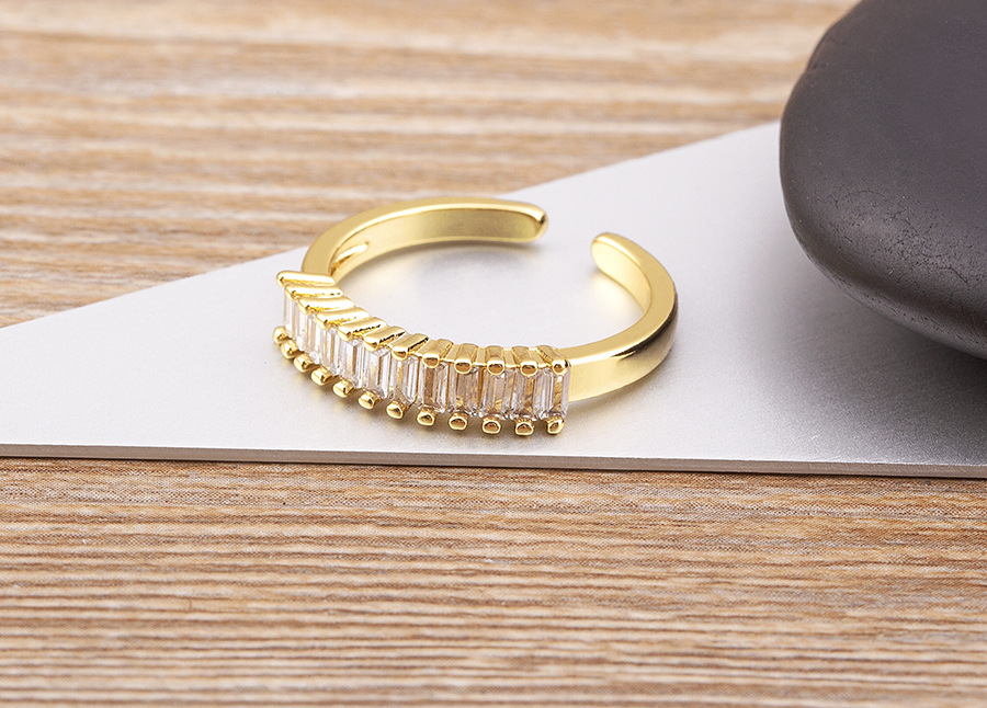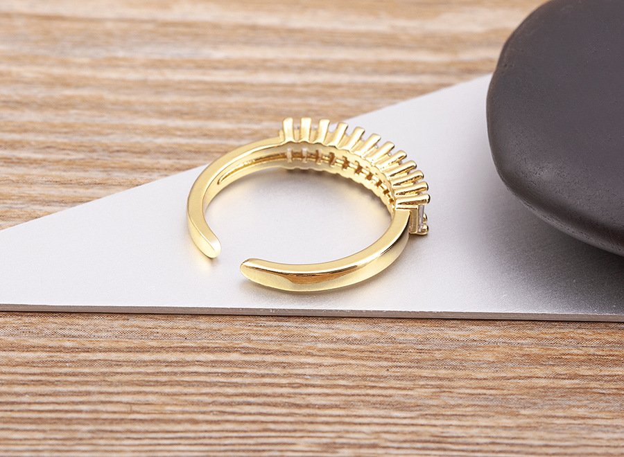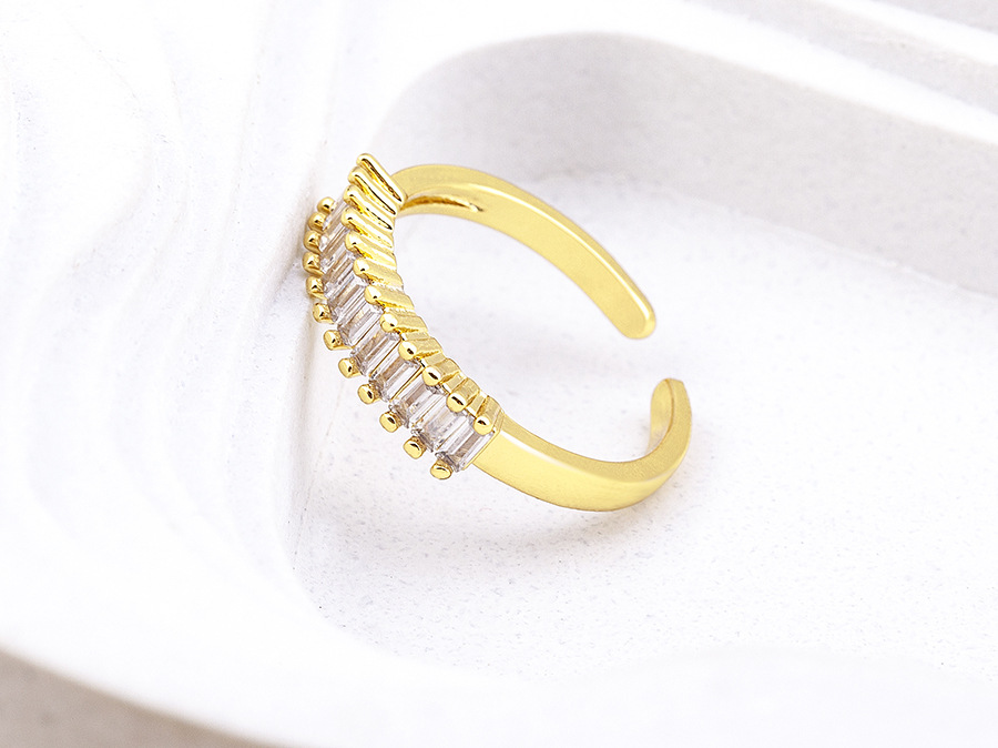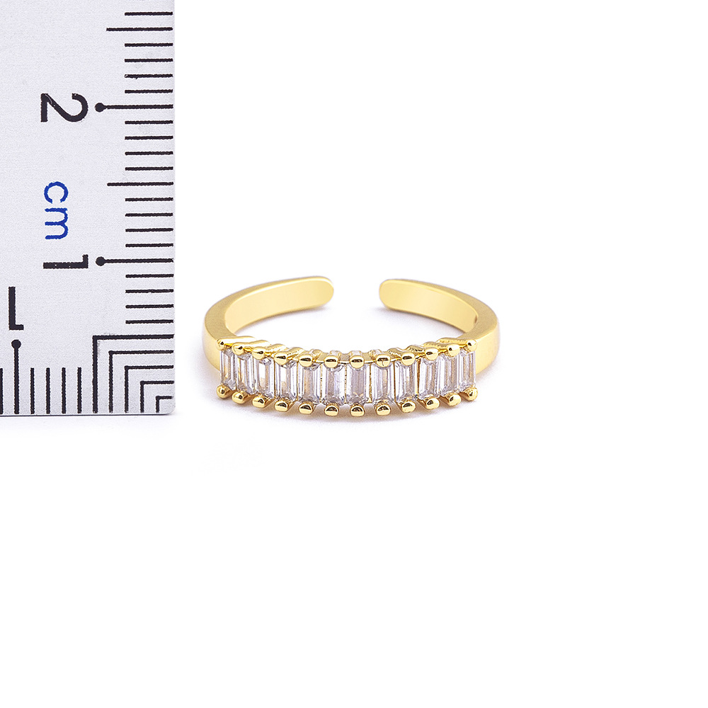 Features: Cubic zirconia geometric open-ring design with electroplating for long-lasting shine