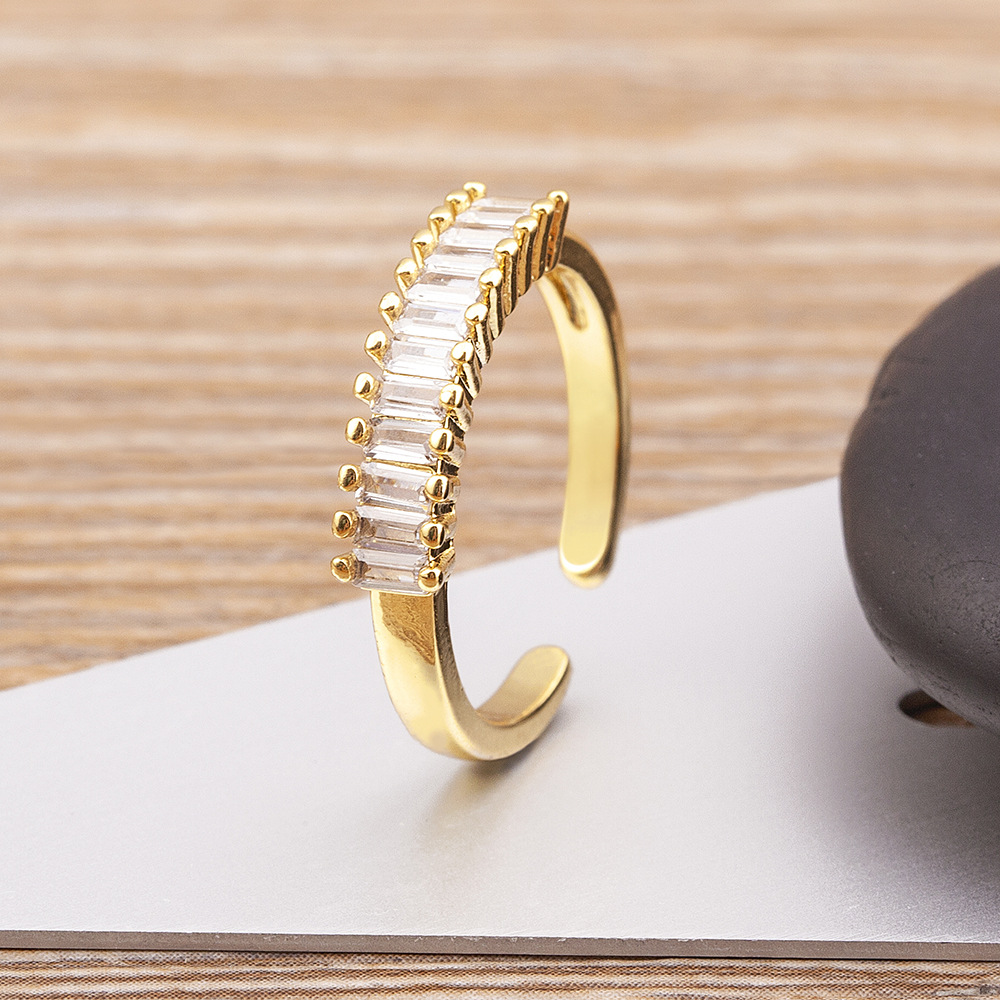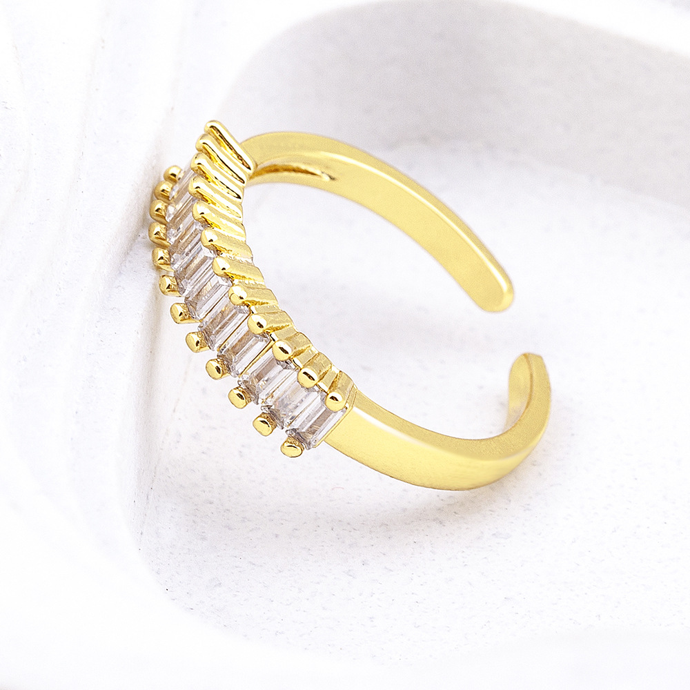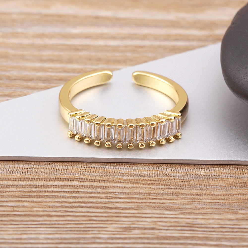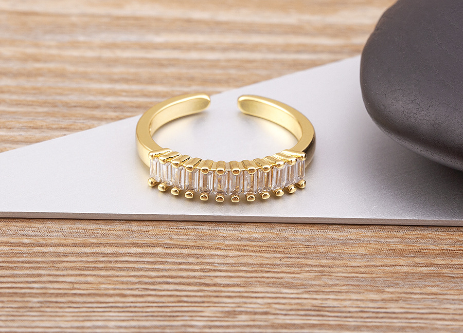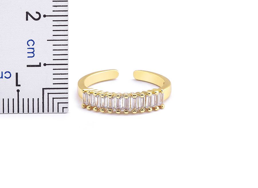 Features: Cubic zirconia geometric open-ring design with electroplating for long-lasting shine