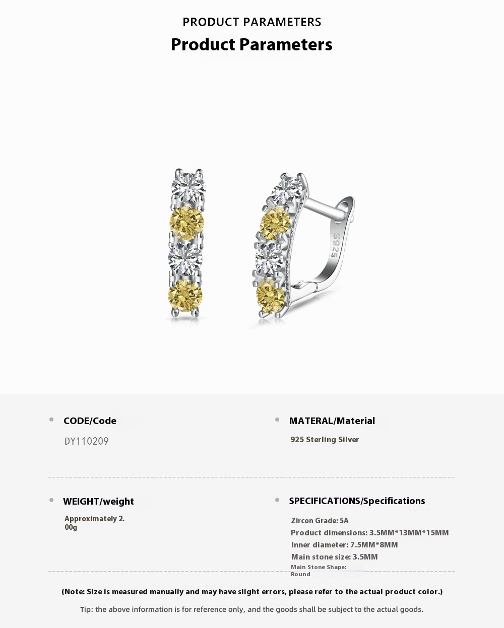 Product information:Color: Platinum yellow white diamond DY110209-S-W-HB Material: Silver Shape: U-shaped, geometric