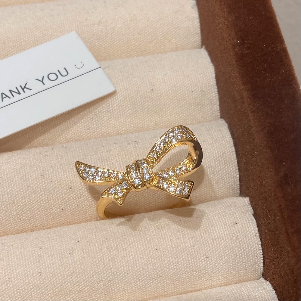 Color: gold miniature zircon inlaid ear studs-gold plated-925 silver needle, silver miniature zircon inlaid ear studs-gold plated-925 silver needle, gold miniature inlaid zircon bow ring, silver micro inlaid zircon bow ring