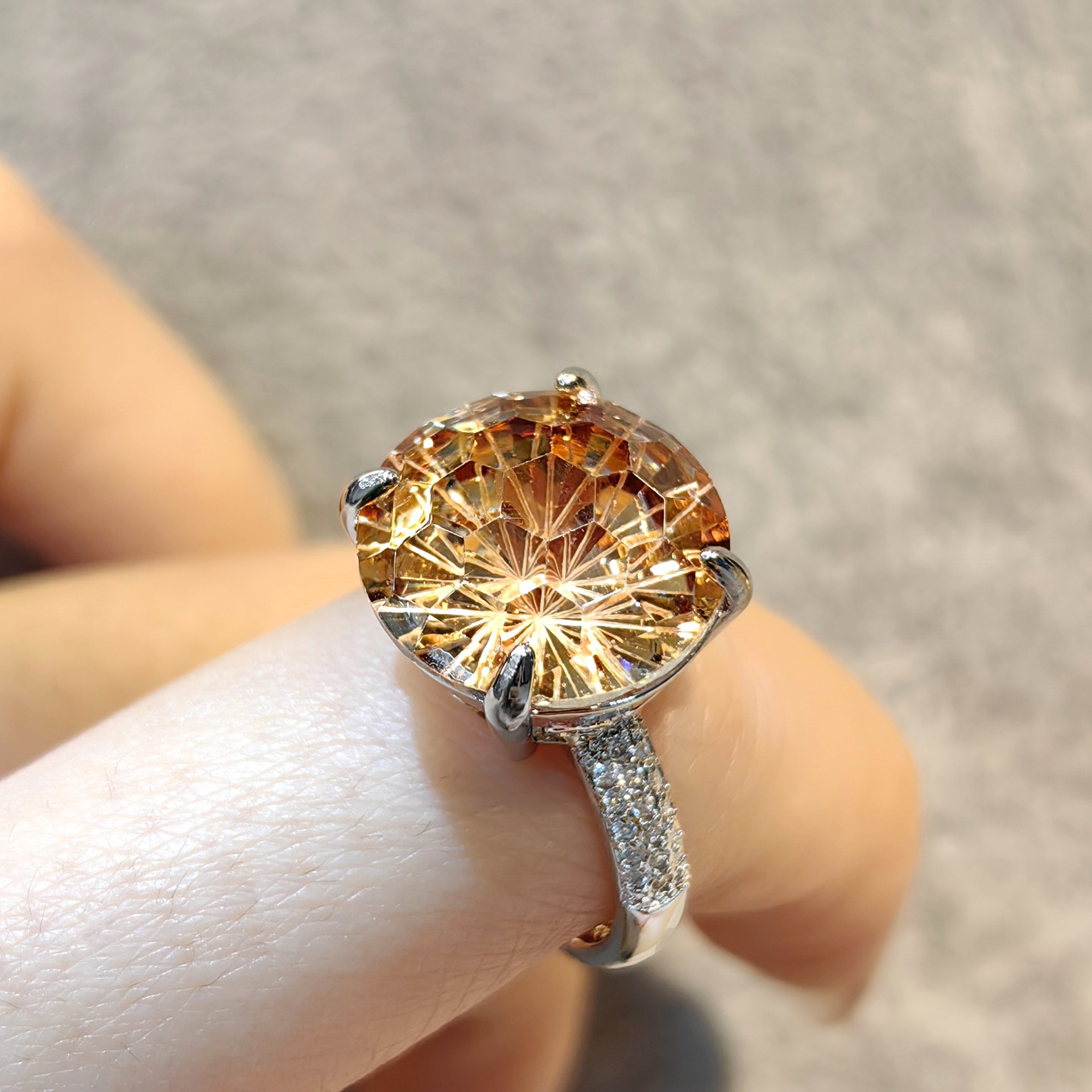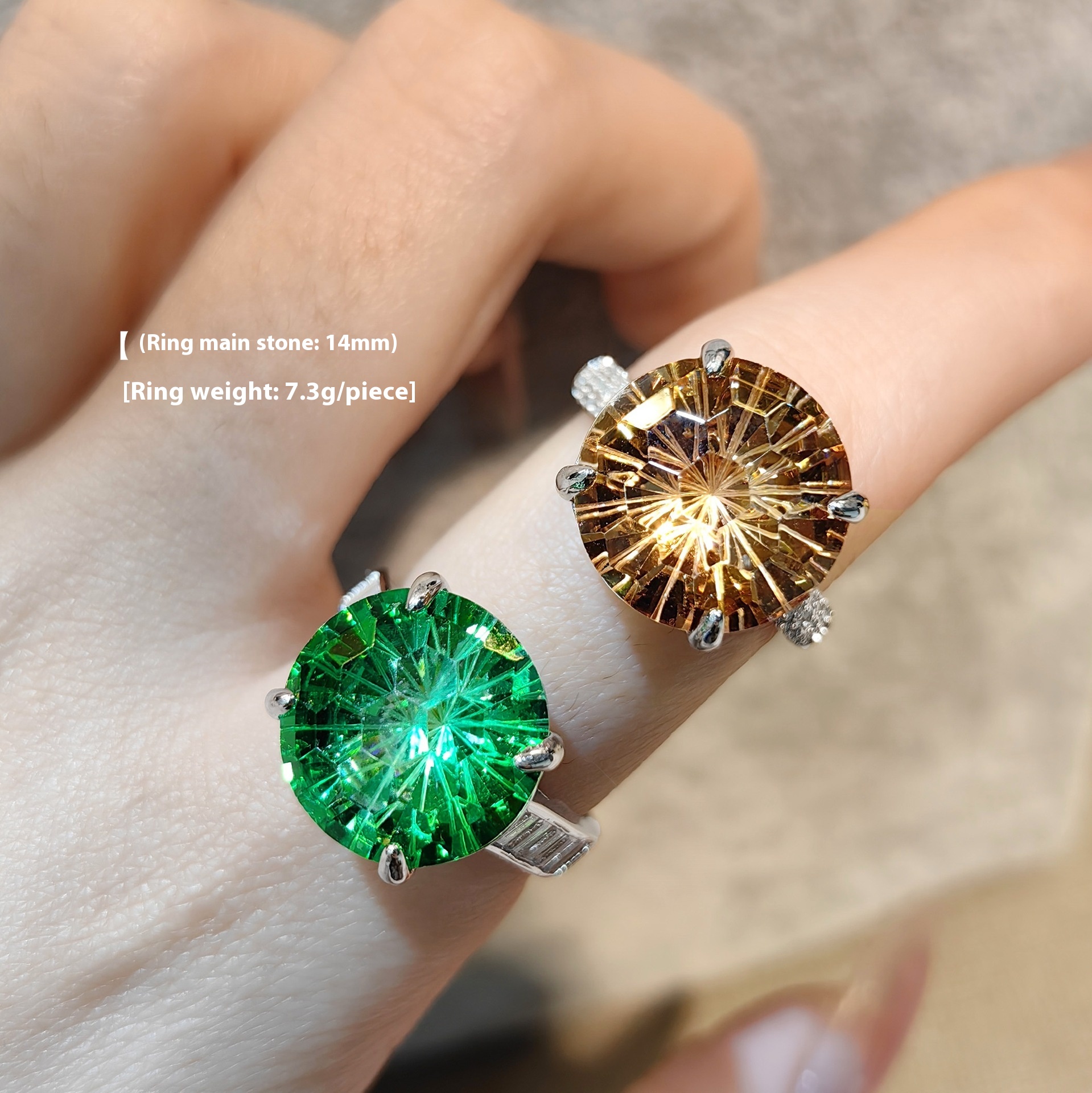 Color: green zirconium fireworks cutting ring, champagne zirconium fireworks cutting ring