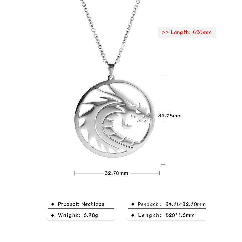 Zodiac Dragon Stainless Steel Round Plate Plating Necklace