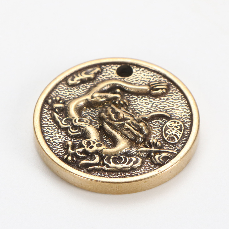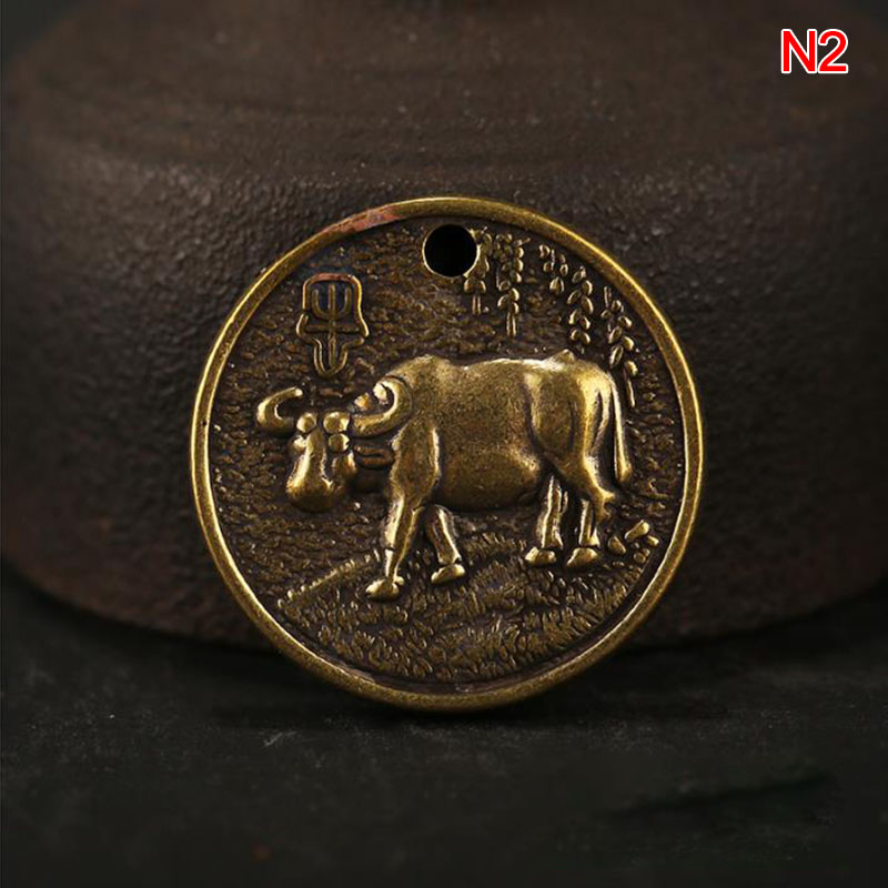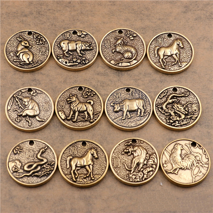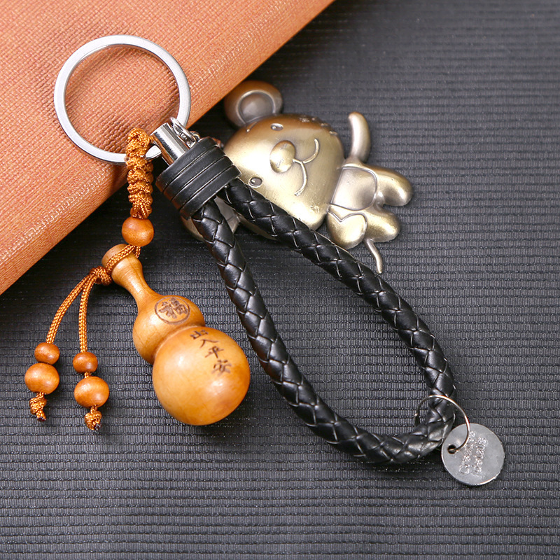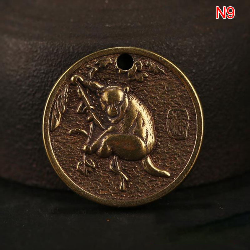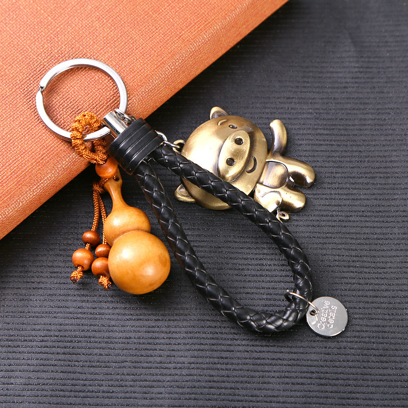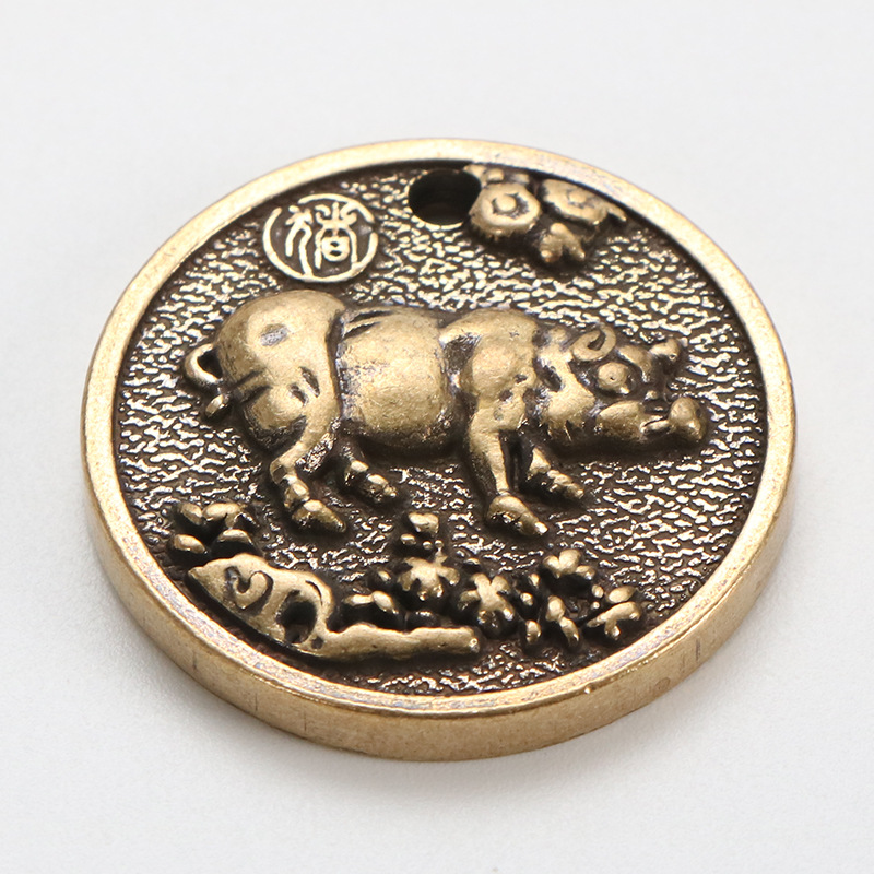 Pure copper Zodiac Eight Diagram brand pendant brass Zodiac Pig wide source of money into pendant key chain hanging bag