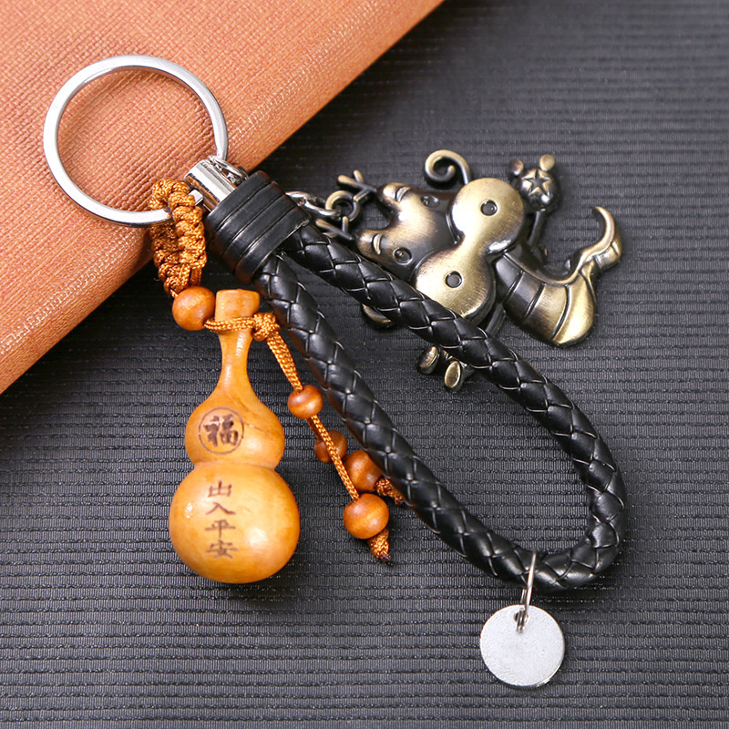 12 zodiac cowhide key ring alloy pendant new creative gift leather woven zodiac key ring