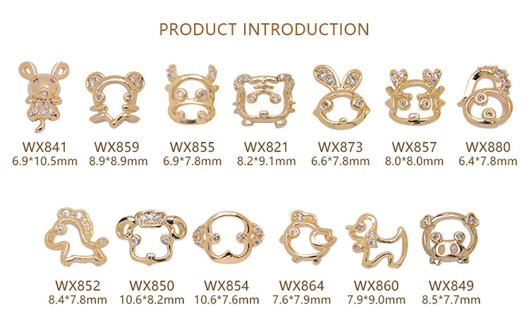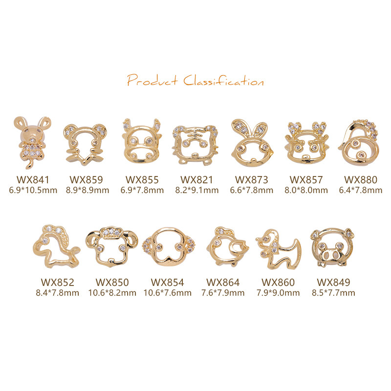 Color Variations: WX841 Little Mouse (set of 2), WX859 Little Mouse (set of 2), WX855 Little Calf (set of 2), WX821 Tiger (set of 2), WX873 Little Rabbit (set of 2), WX857 Dragon (set of 2), WX880 Little Snake (set of 2), WX852 Little Horse (set of 2), WX850 Little Sheep (set of 2), WX854 Little Monkey (set of 2), WX864 Little Chicken (set of 2), WX860 Puppy (set of 2), WX849 Piggy (set of 2), WX980 Red Bull (set of 2), WX981 Full-Crystal Cow (set of 2), WX982 Metal Cow (set of 2), WX983 Jade Cow (set of 2), WX984 Pearl Cow (set of 2), WX985 God of Wealth (set of 2)